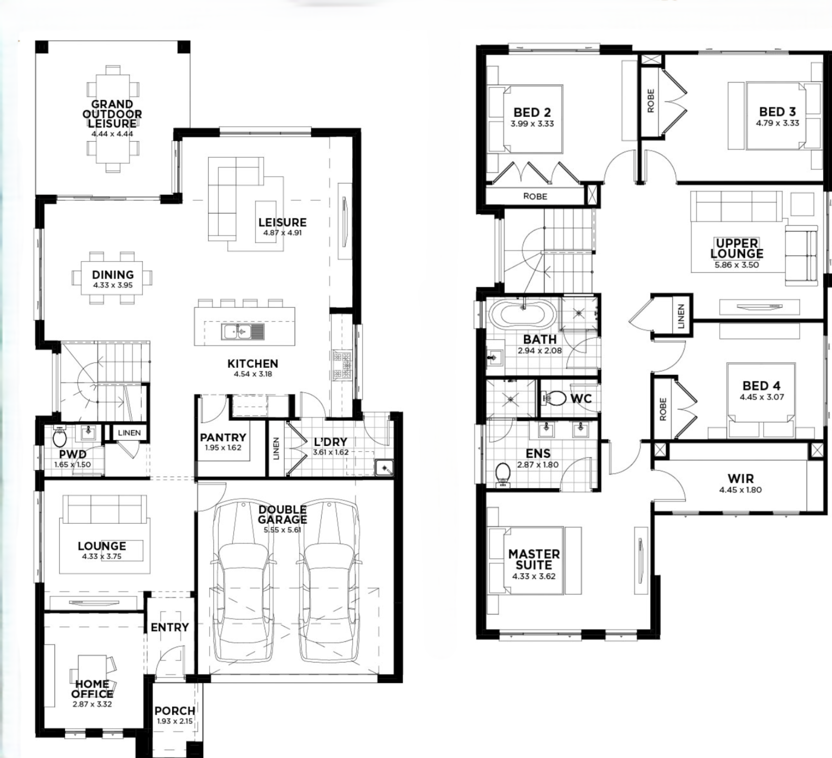The Washington 33 is a 4-bedroom, 2.5-bathroom home that blends grandeur with functionality. Designed for modern family living, it features formal and informal spaces, a designer kitchen with butler’s pantry, and seamless indoor-outdoor flow. With multiple living zones, a dedicated home office, and a luxurious master suite upstairs, this spacious design caters to every lifestyle and stage of family life.