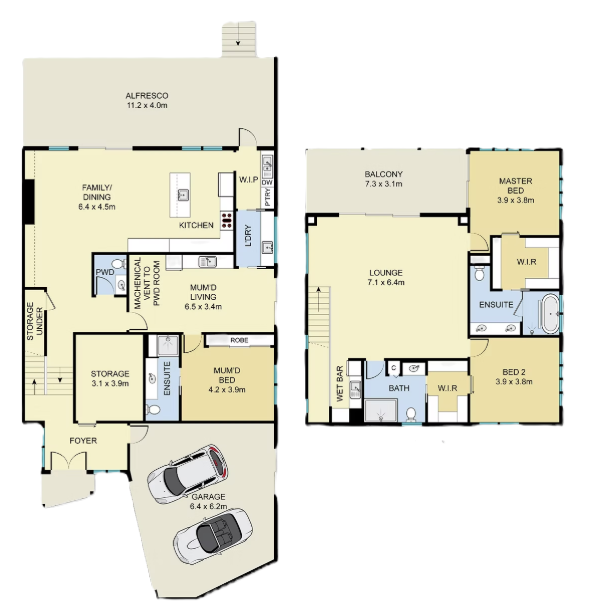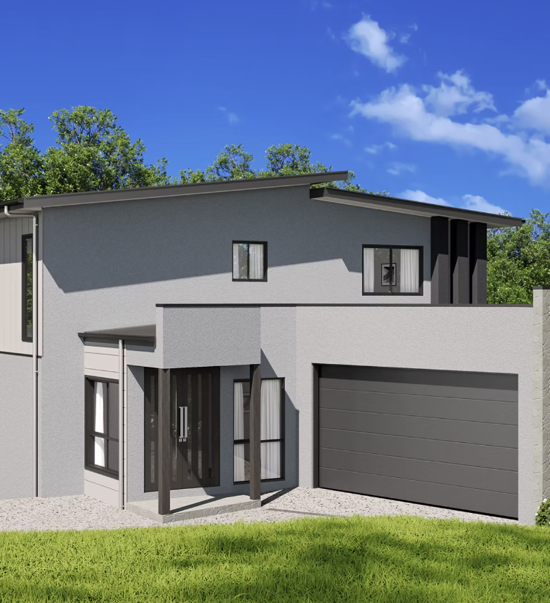 The Rynea is an exceptional modern split-level house design perfectly suited for any sloping block, and it showcases a striking render facade. This thoughtfully designed home embraces the natural terrain, making full use of the block's potential.