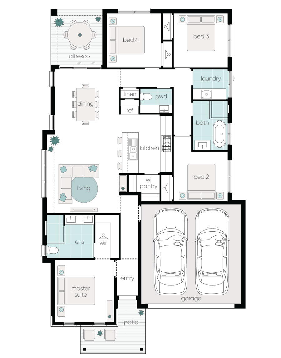 The heart of the home is where you'll find the family dining and entertaining across the open-plan living room and generous alfresco.