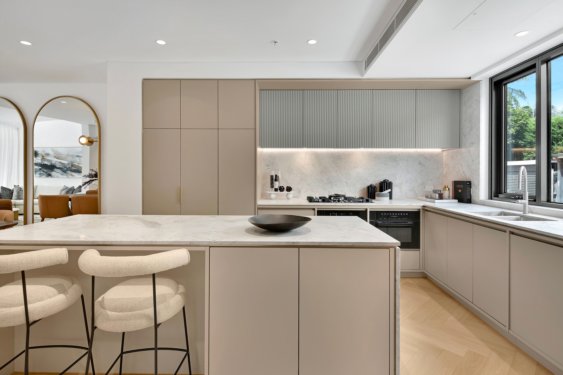 • Designer Miele kitchen with stone island bench and abundant storage