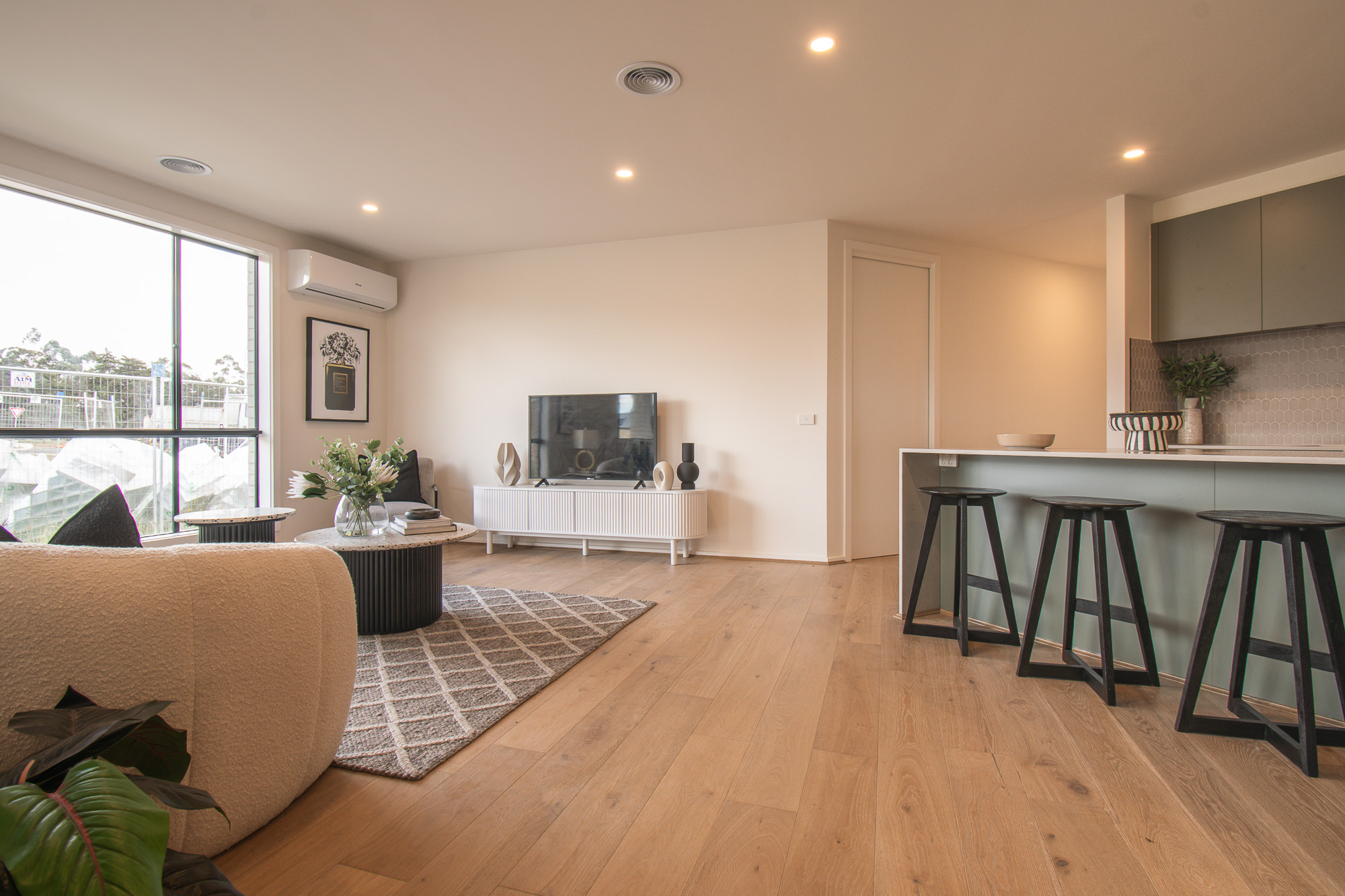 Comfort and efficiency are prioritised with 7-star energy compliance, LED lighting, a 1.7kW solar panel system, heat pump hot water with gas booster, gas ducted heating and a Rinnai 6kW reverse-cycle air conditioner with WiFi, ensuring year-round climate control.