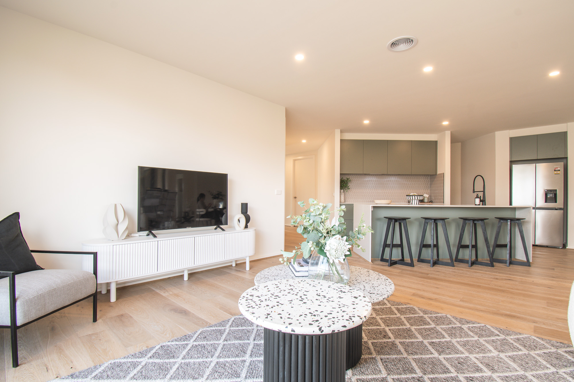 Set on a generous 665m² allotment with a 19.55-metre-wide backyard, the home enjoys views of mature planting and direct access to walking and bike paths, delivering a lifestyle that balances privacy, space and connection to the outdoors.