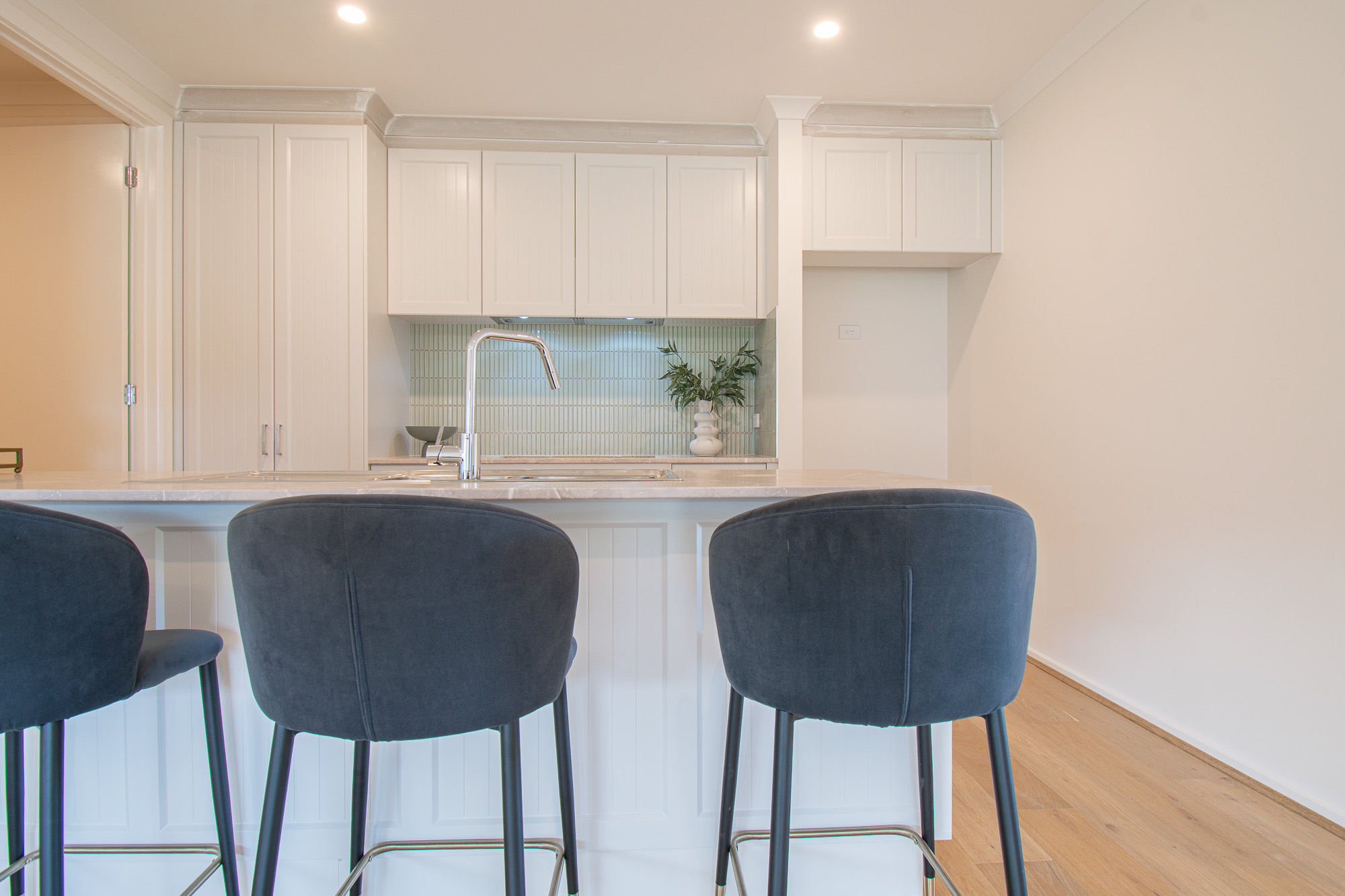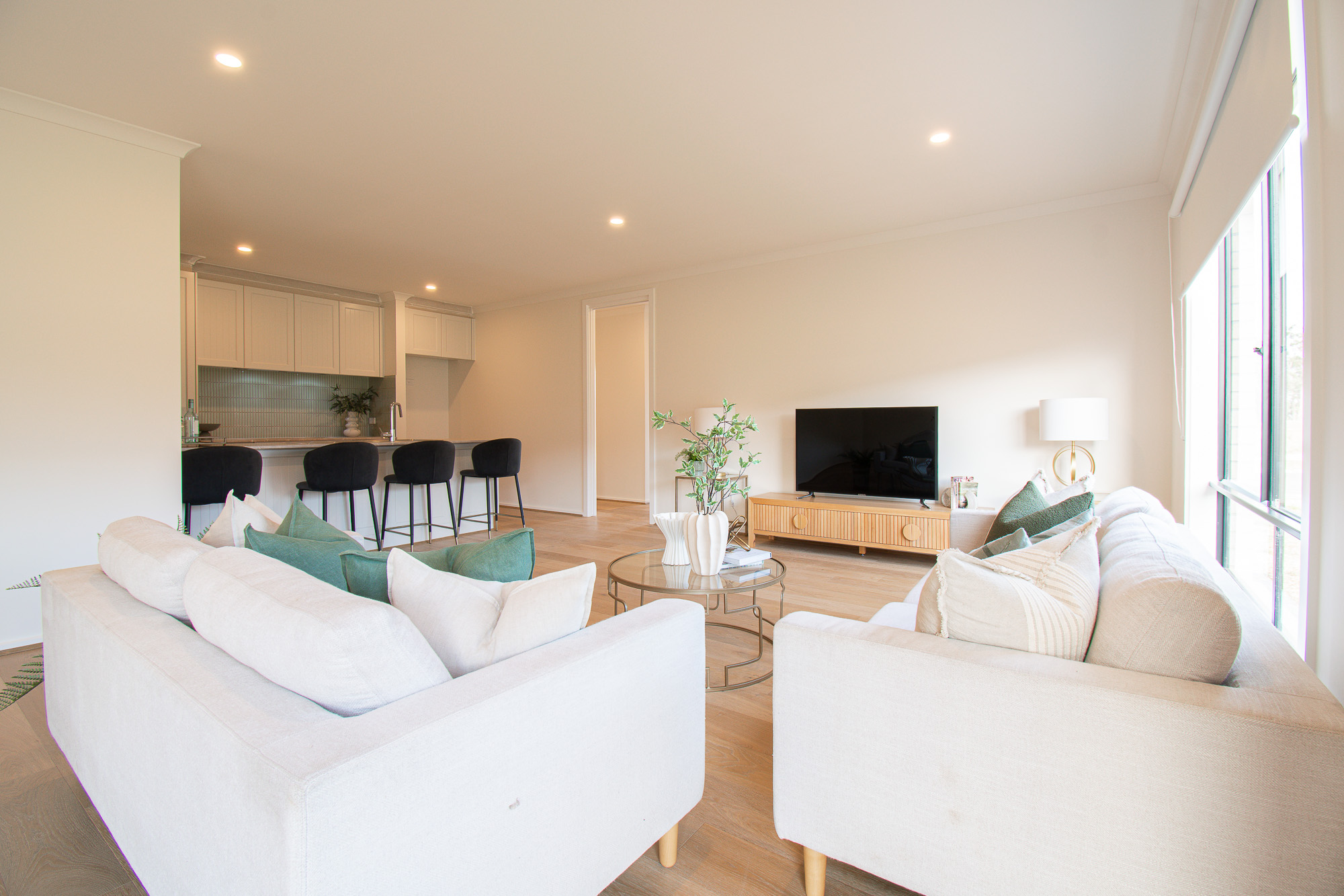 Crafted with meticulous attention to detail, this three-bedroom, two-bathroom residence showcases a suite of premium inclusions including 2540mm ceilings, widened doorways, stone benchtops, three-coat Haymes paintwork, Grand Oak timber flooring, plush upgraded carpets and large-format tiling throughout.