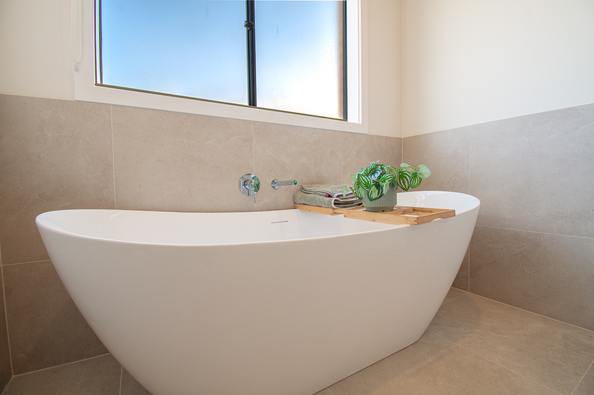 The main bedroom provides a peaceful retreat, complemented by a well-appointed ensuite, while a freestanding Oceania bathtub, chrome tapware and upgraded tiling elevate the bathrooms with a touch of luxury.