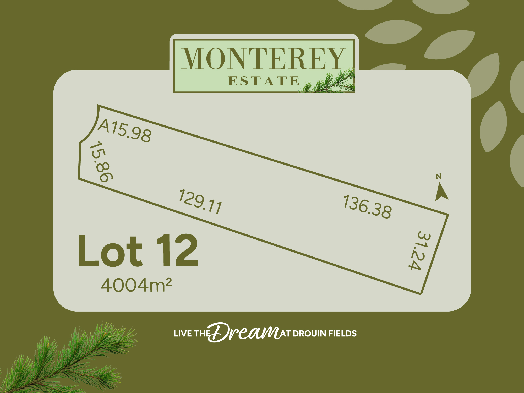 Monterey Estate offers just 17 exclusive 1-acre allotments, each nestled among majestic Monterey pine trees in a tranquil, picturesque setting. Located only a 4-minute drive from Drouin Township and moments from the local golf course, the estate combines peaceful living with unmatched convenience, including effortless access to the Princes Freeway.