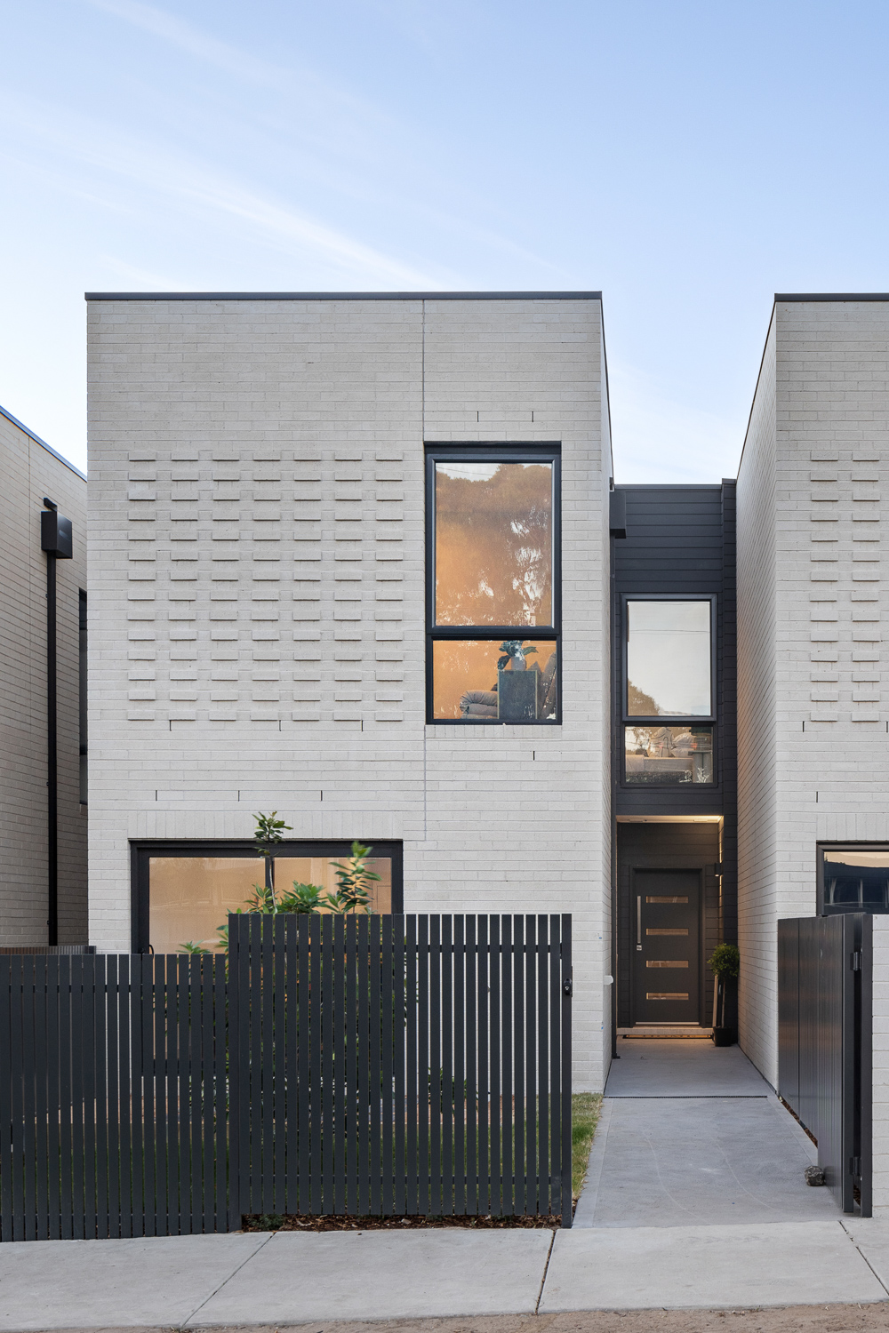 - Timeless facades offering striking contrast with textured materials.