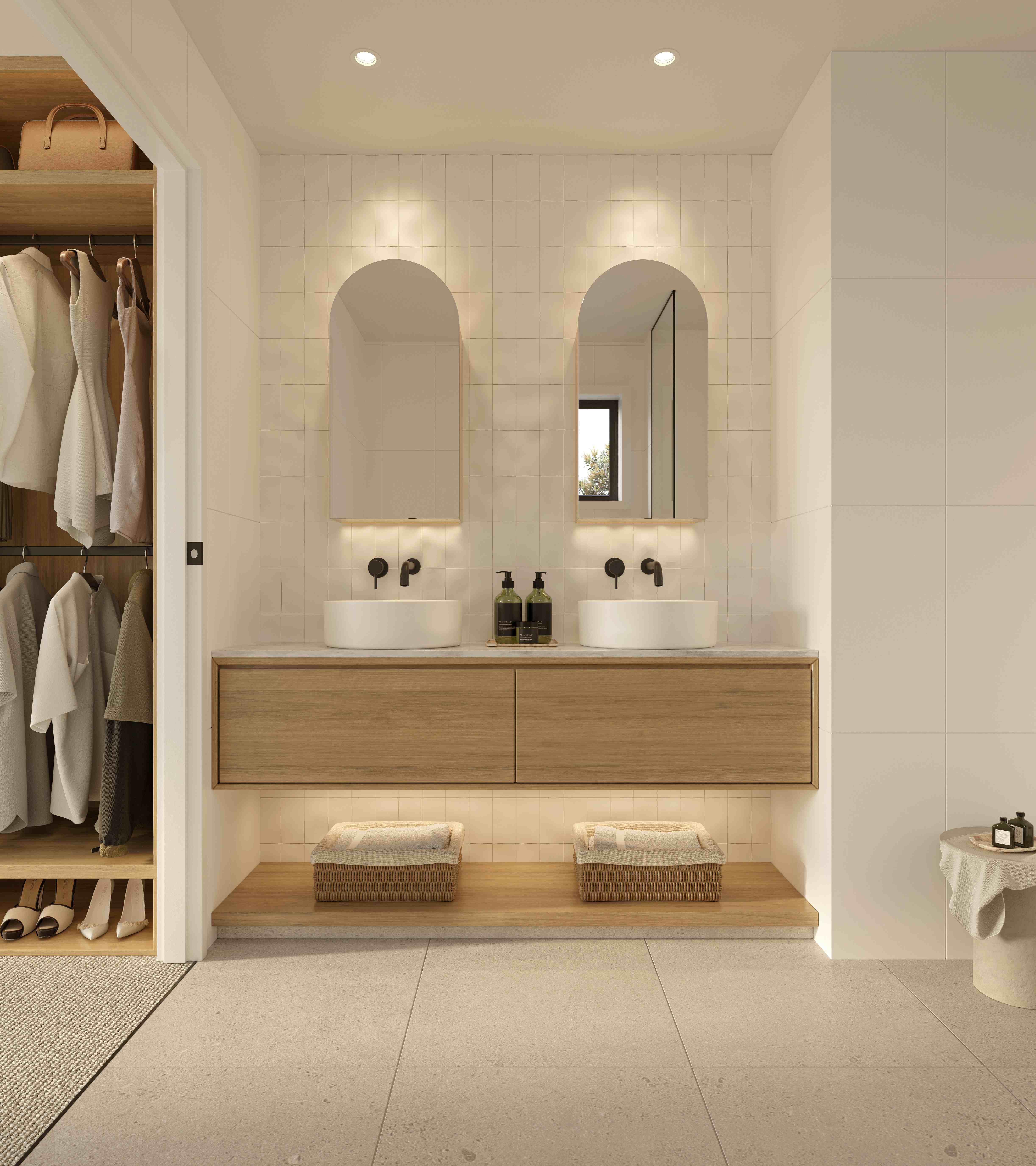 - Elegantly finished bathrooms with floor-to-ceiling tiles and custom vanities