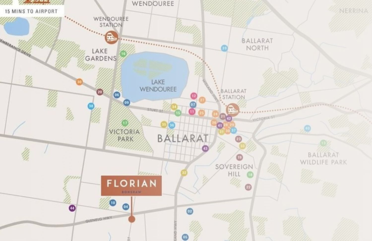 | Distance to | Ballarat CBD - 5 km south-west |