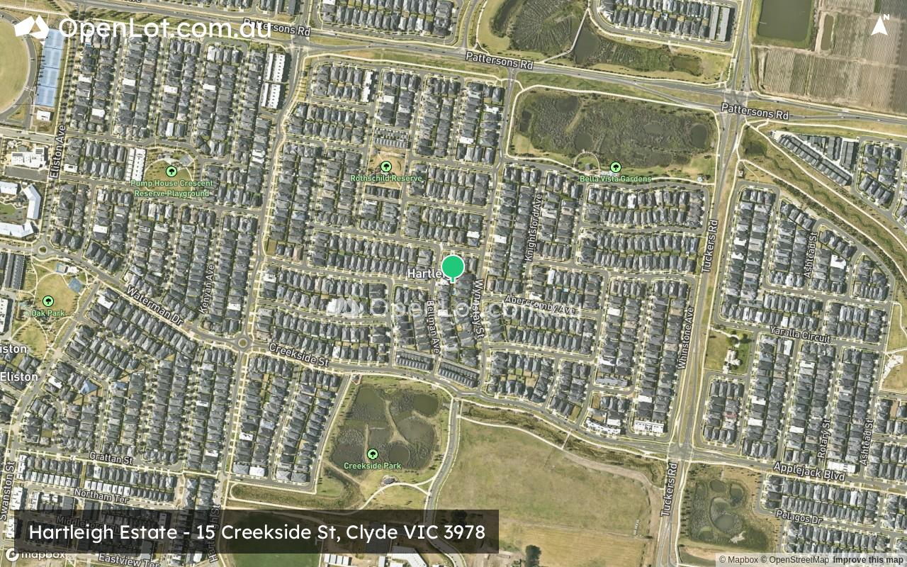 The suburb will include a network of shared paths, linking the local parks and a new road network. A road network including a 6 lane (primary arterial) road along Pattersons Road and 4 lane (second arterial) road along Tuckers Road to facilitate vehicle access to the surrounding growth areas and Clyde North. Access to Berwick – Cranbourne Road to the west will provide a direct connection to the Princes Freeway, access to Melbourne CBD or eastern Victoria.