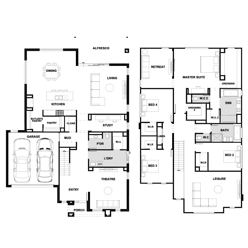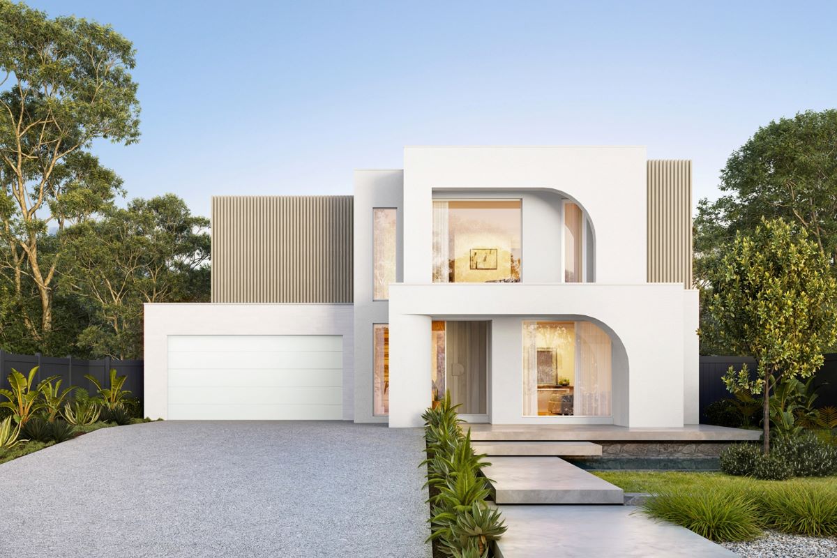 Featuring the stunning Sofia 438-D47 design with the eye-catching curved Monroe façade, this double-storey home blends elegance and functionality. Enjoy a master suite with private retreat, expansive open-plan living anchored by a designer kitchen and wrap-around butler’s pantry, plus walk-in robes to all secondary bedrooms.