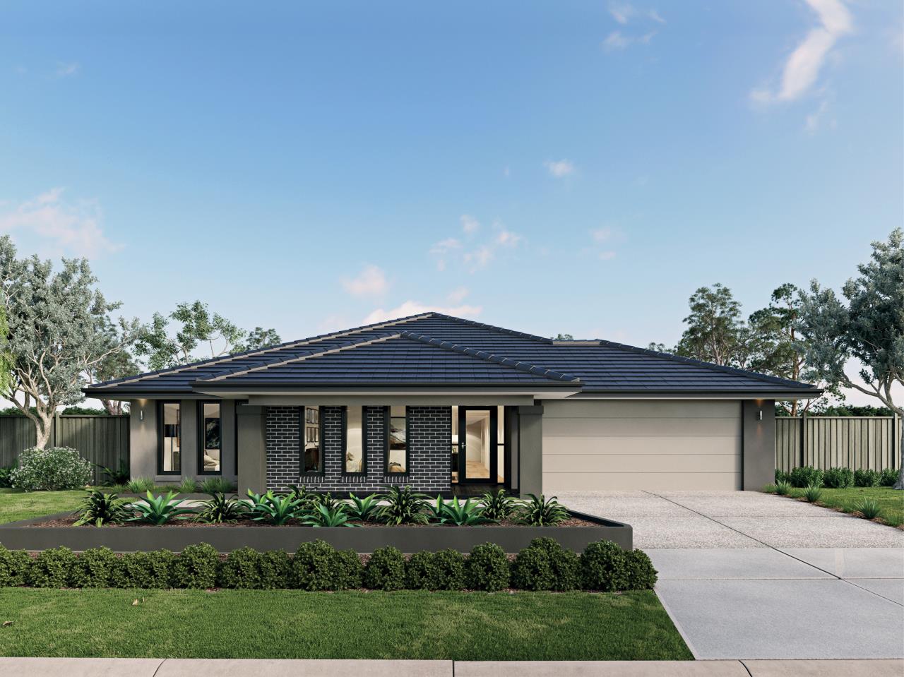 *Price excludes upgrade items above standard specification such as feature render and bricks, front entrance timber decking, front entry door, brick infills above garage, external lighting, fencing, concrete paths and driveway. Facade Image may also contain items not supplied by Metricon, namely landscaping and planter boxes. Aluminium double glazed windows are subject to specific home design, refer to plans.