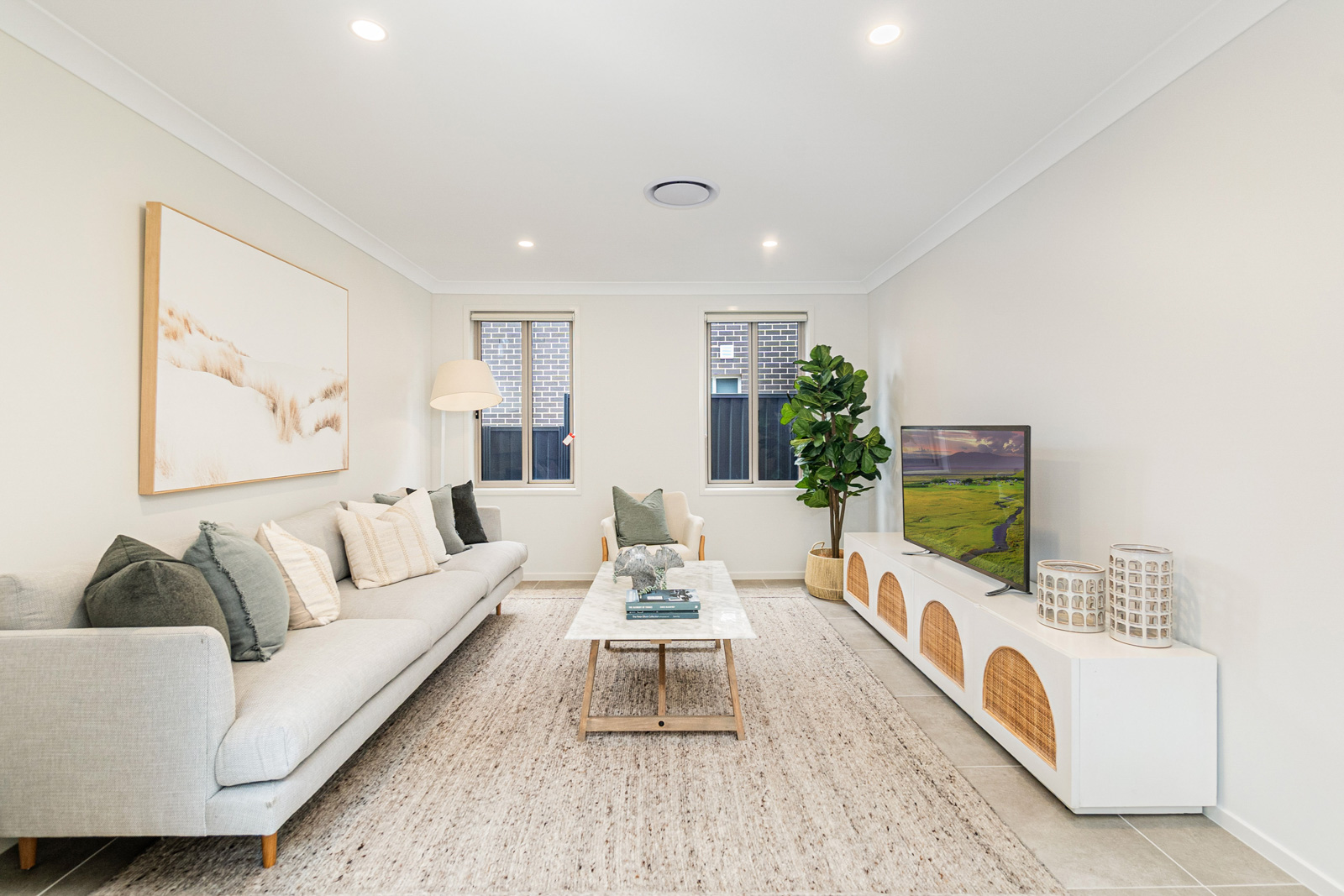 -Flyscreens to all windows and sliding doors, block out blinds throughout, and light filtering blinds to front elevation