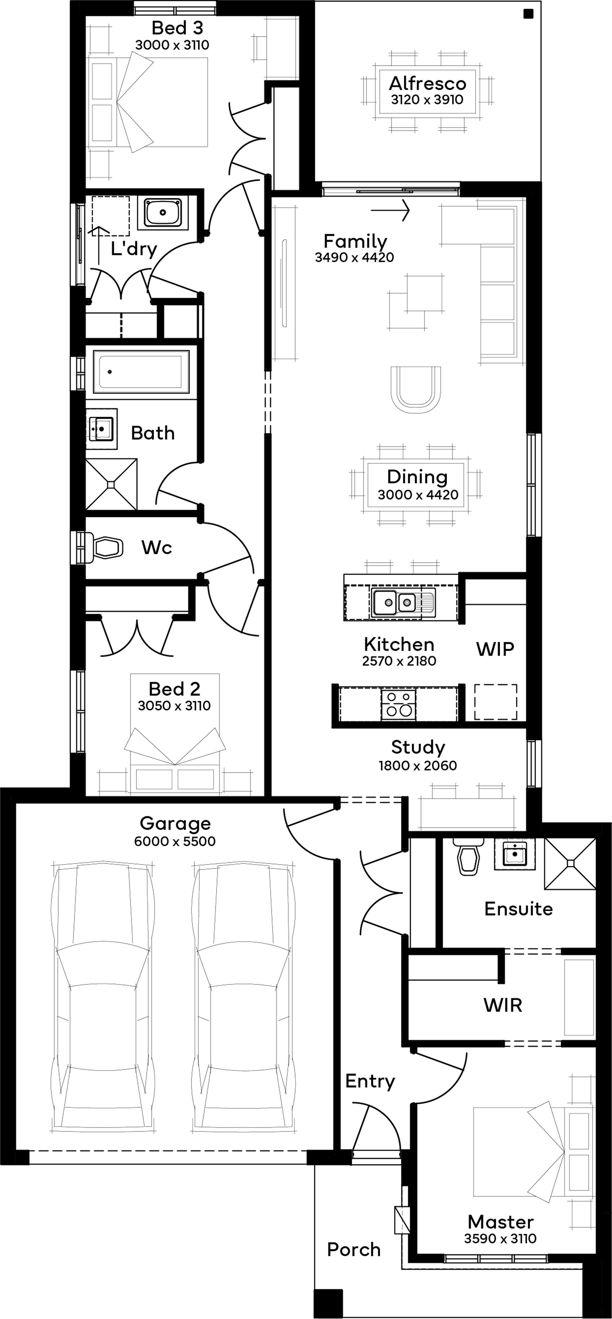 Brings contemporary elegance to functional family living in a modern house design.