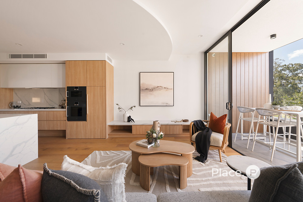 - Gourmet kitchens featuring Gaggenau appliances and Carla Grigio stone benchtops