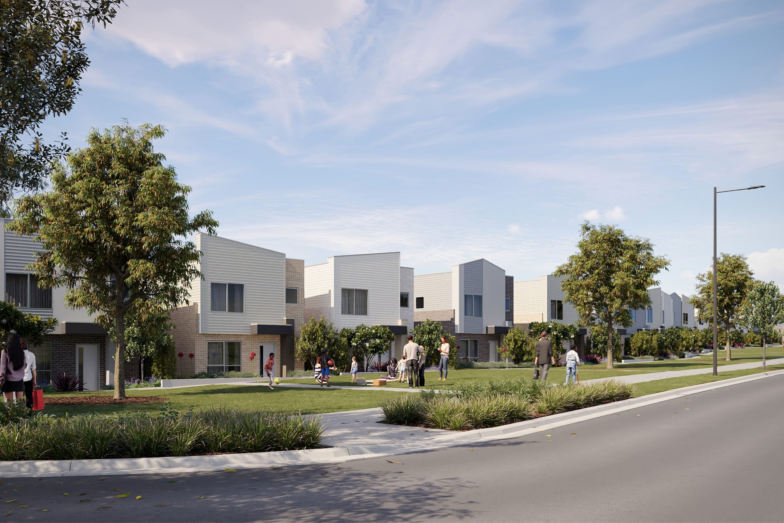 Green spaces will be integrated with new homes with landscaping and tree planting along streets and in public domain areas and protected vegetation.