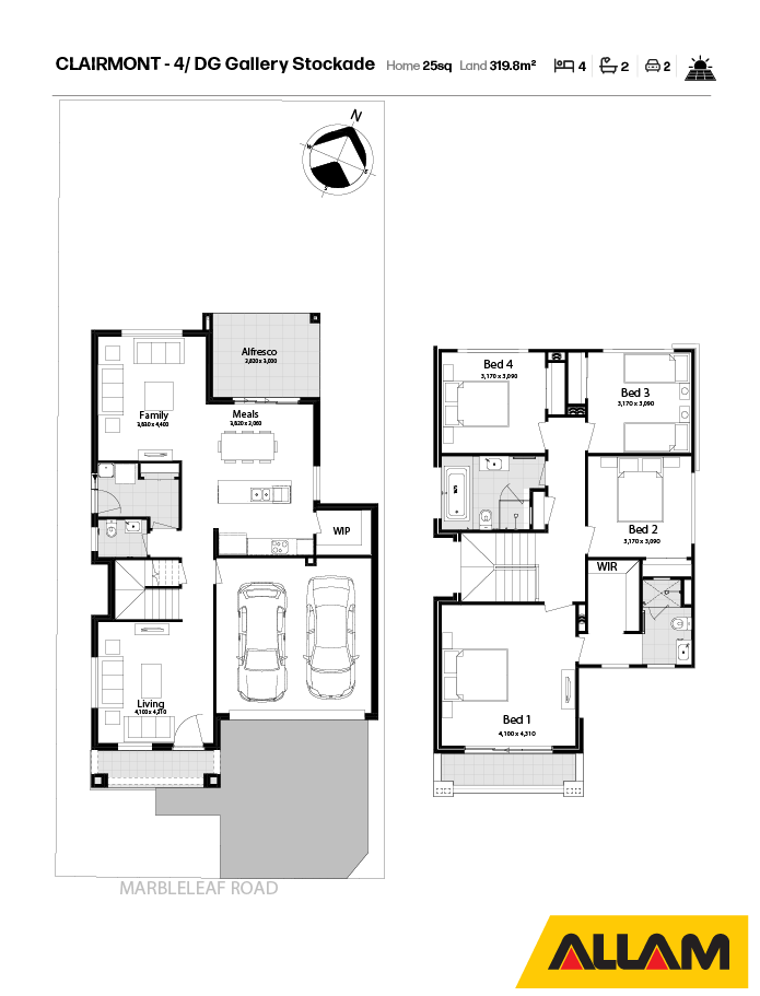 Disclaimer: Plans, drawings, and designs on this website are for marketing and illustrative purposes only. Dimensions are approximate, subject to survey and final subdivision plans (STCA). Plans are not to scale. Images, including artist impressions, may depict items not included in the sale. Purchasers should rely on their own enquiries and the Contract for Sale. Allam Homes Pty Limited may alter designs, specifications, dimensions, inclusions, and prices without notice. For full terms, visit www.allam.com.au.