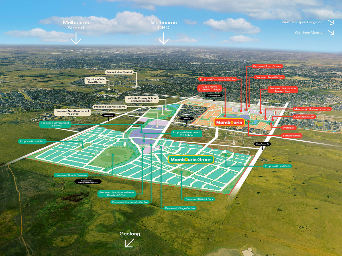 Mambourin is approximately 248 square kilometres located within the City of Wyndham forming part of the Victorian west growth corridor area, located 38 kilometres south-west of Melbourne, 45 kilometres from Geelong. The suburb is a result of two large master planned community projects in the area, in proximity to the existing Regional Rail Link between Werribee and Wyndham Vale. The existing suburb was originally primarily grazing land holdings and the residents relied on adjoining urban residential suburbs for services and retail convenience.