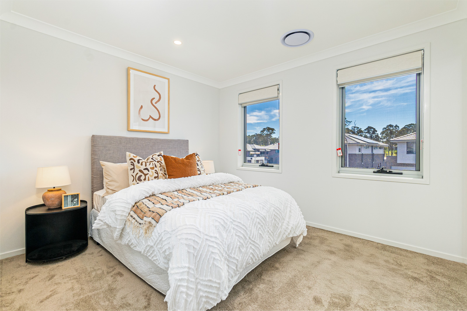 • Flyscreens to all windows and sliding doors, block out blinds throughout, and light filtering blinds to front elevation