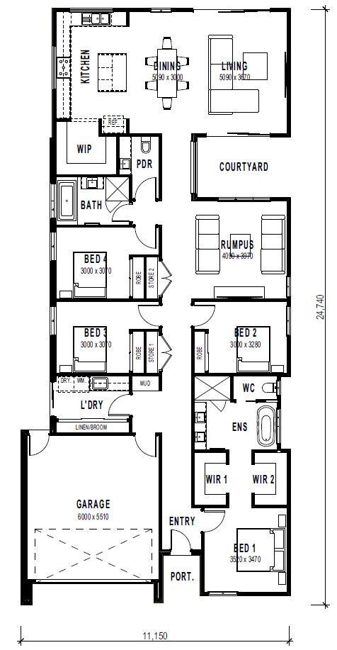 A home that celebrates the blend of contemporary style and family living. The modern flat-roofed rear opens the kitchen, living, and dining areas to the backyard, while a private courtyard separates the main living zone from the rest of the home. With four bedrooms, two living areas, a generous walk-in pantry, and a luxe master ensuite featuring his-and-hers robes, a bath, large shower, and double vanity, The Fusion is designed for modern entertaining and practical everyday living.