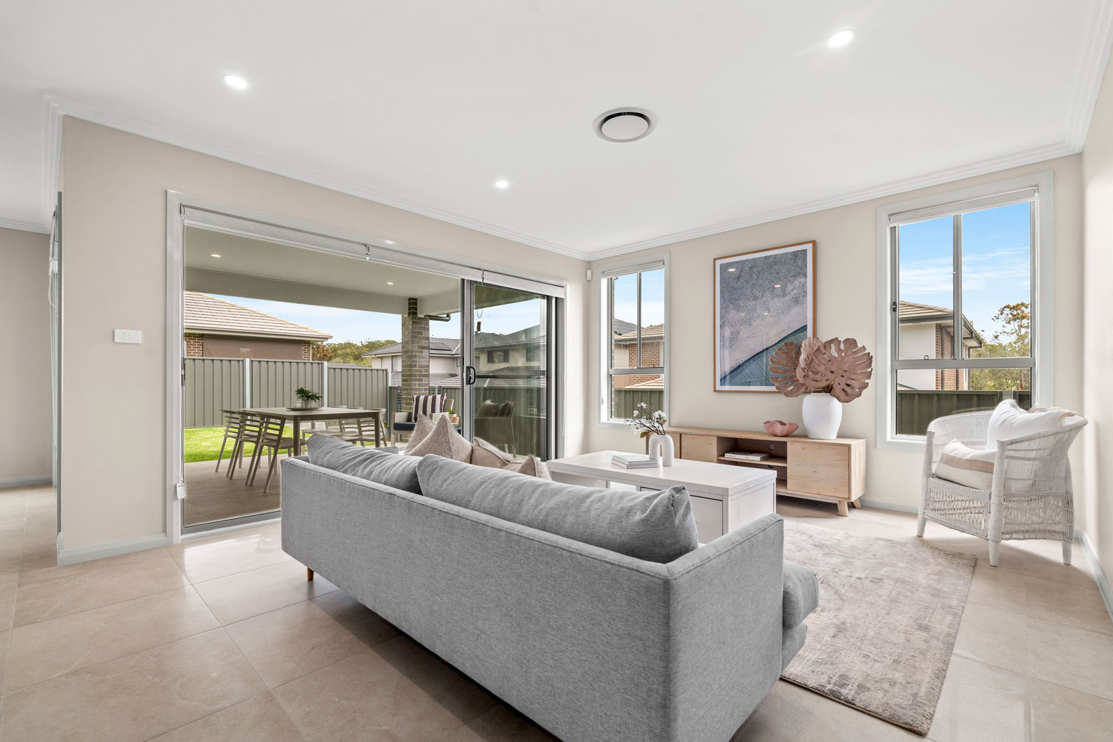 Large stacker doors seamlessly connect the indoor and outdoor living areas, leading to the outdoor tiled alfresco area – an entertainer's dream.