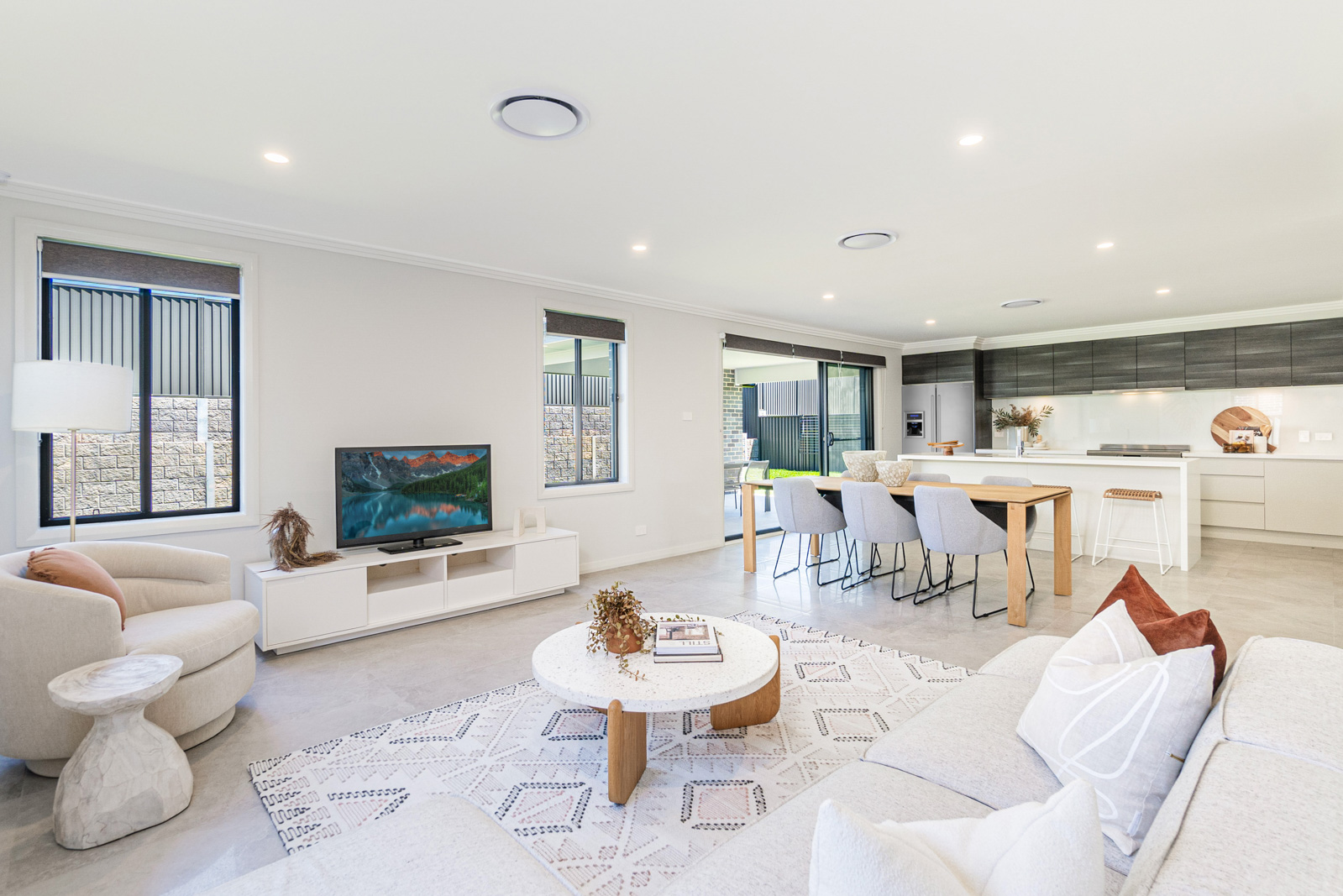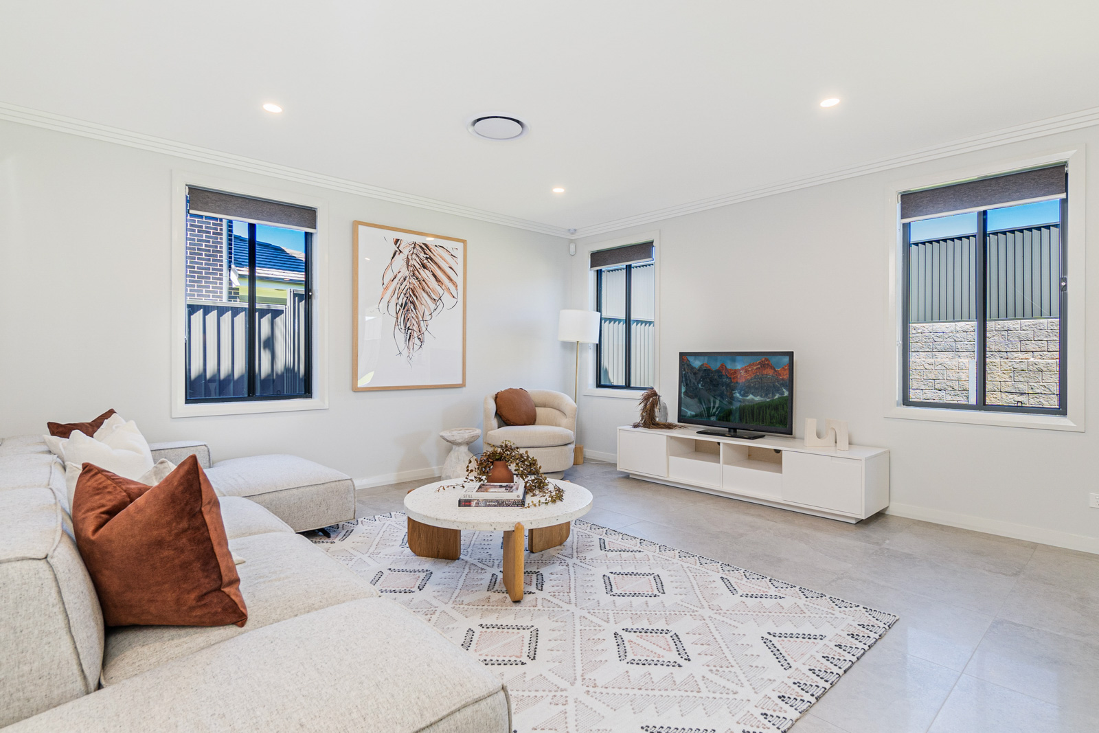 • Flyscreens to all windows and sliding doors, block-out blinds throughout and light-filtering blinds to the front elevation