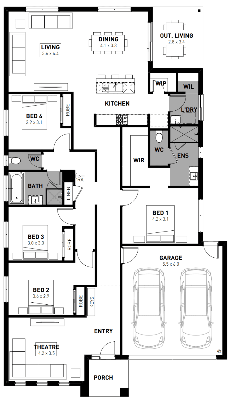 DISCLAIMER*All plans are protected by copyright and are owned by ABN Group (Vic) Pty Ltd. The building practitioner is ABN Group (Vic) Pty Ltd trading as Homebuyers Centre, registration number CDB-U 49215. Images are for illustrative purposes only and may depict items not supplied by Homebuyers Centre. Homebuyers Centre reserves the right to change home design measurements and design options without notice. For more information on pricing, facades or specifications, please contact your New Homes Consultant. All information contained within this document is accurate at time of printing (August 2023). #Inclusions listed in this document are not exhaustive. For a complete list of inclusions, please contact your New Homes Consultant and refer to your HIA New Homes Contract. ^Homebuyers Centre is responsible for providing the connection point only. It is the owner's responsibility to arrange for connection services (gas, NBN, water, etc.).