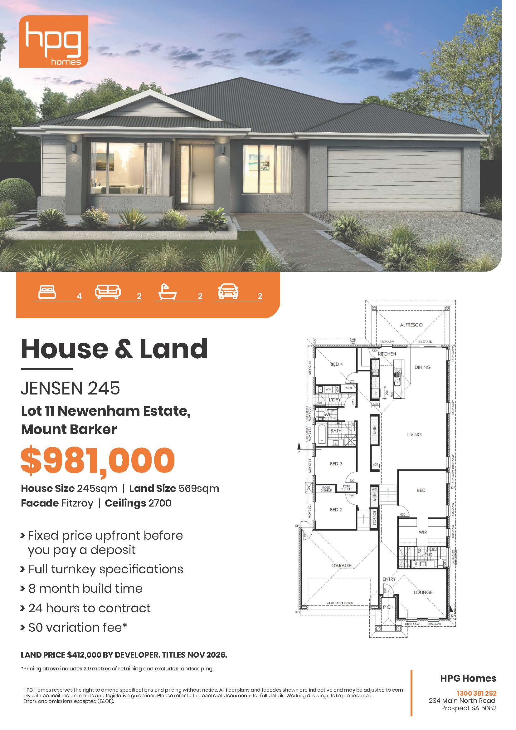 Lot 11: Jensen 245 Split Level @ Newenham Adelaide Hills Estate - Mount Barker SA 5251