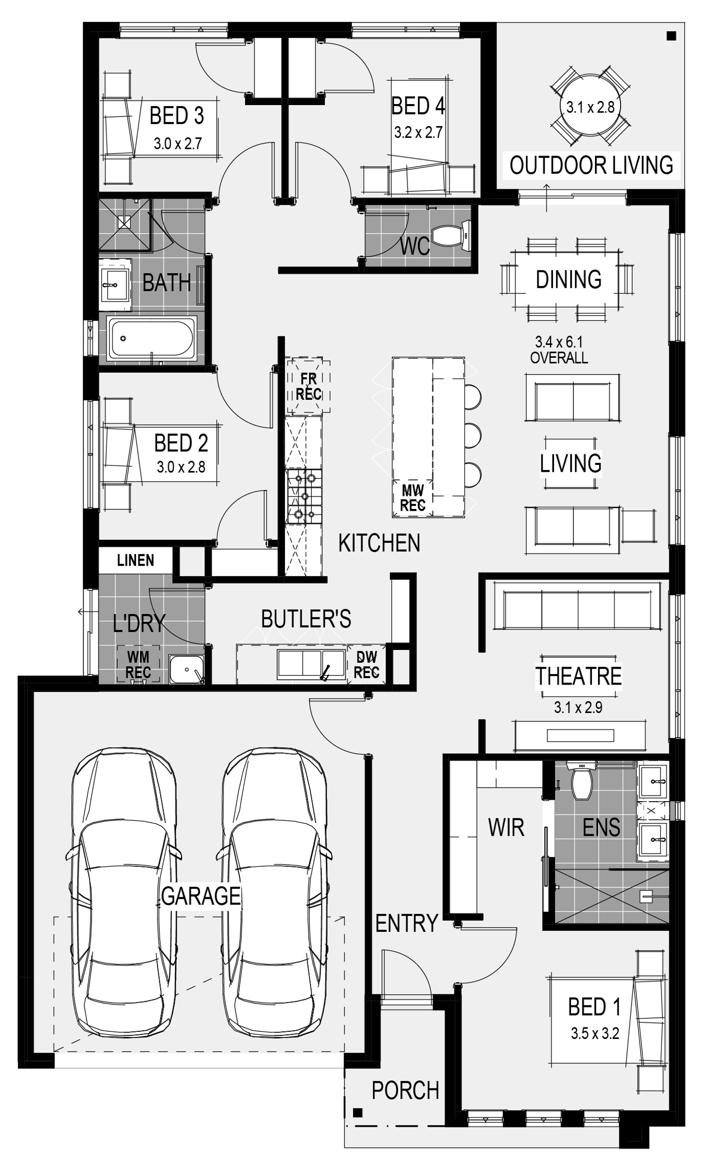 Stone benchtops to kitchen, ensuite and bathroom
