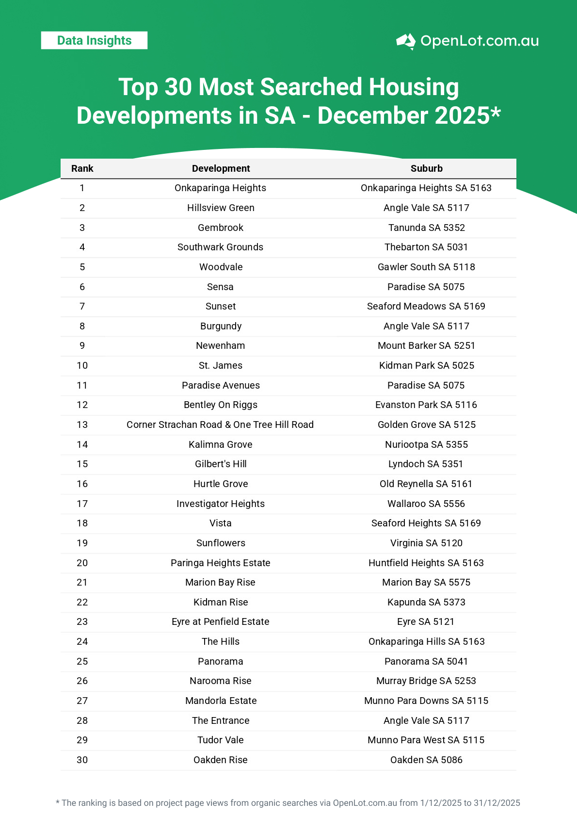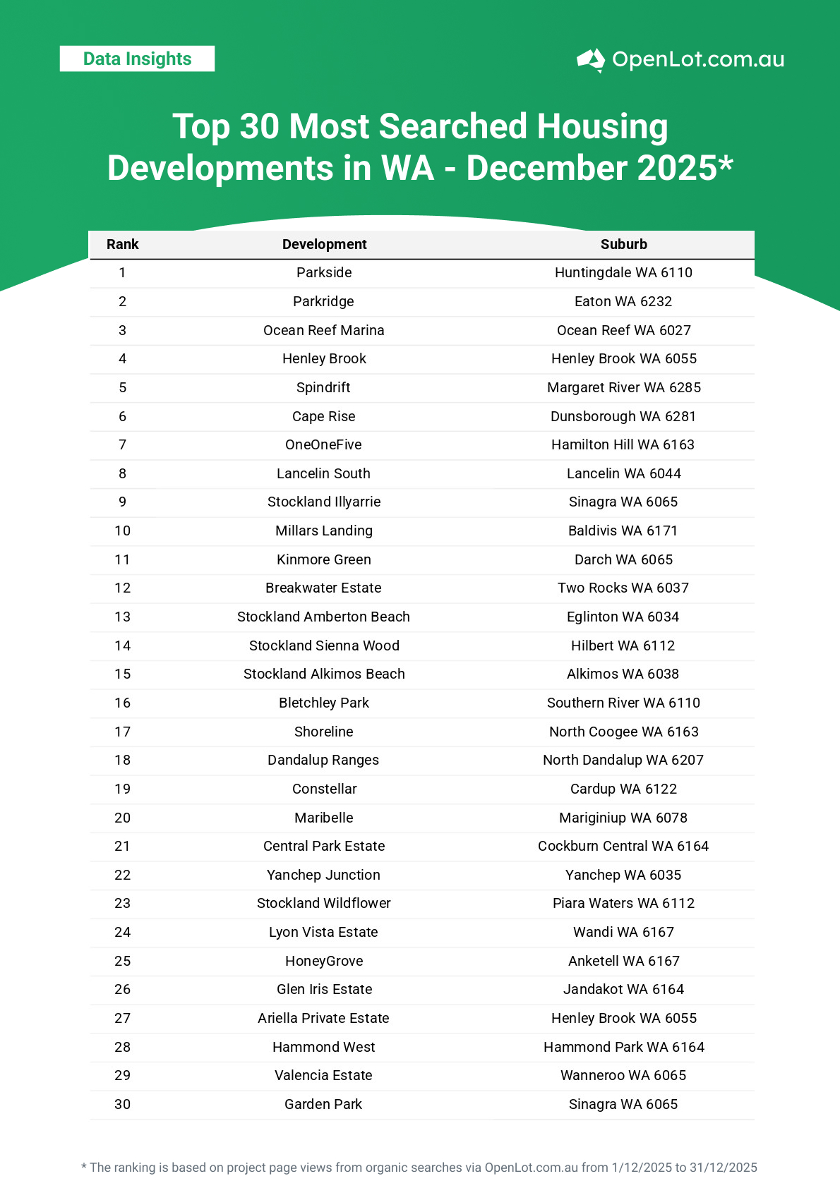 As 2025 came to a close, December’s data reinforced the ongoing appeal of well-located, lifestyle-driven communities supported by infrastructure and long-term planning. With buyer interest remaining resilient across both metropolitan and regional markets, early 2026 is expected to continue highlighting growth corridors and amenity-rich estates nationwide.