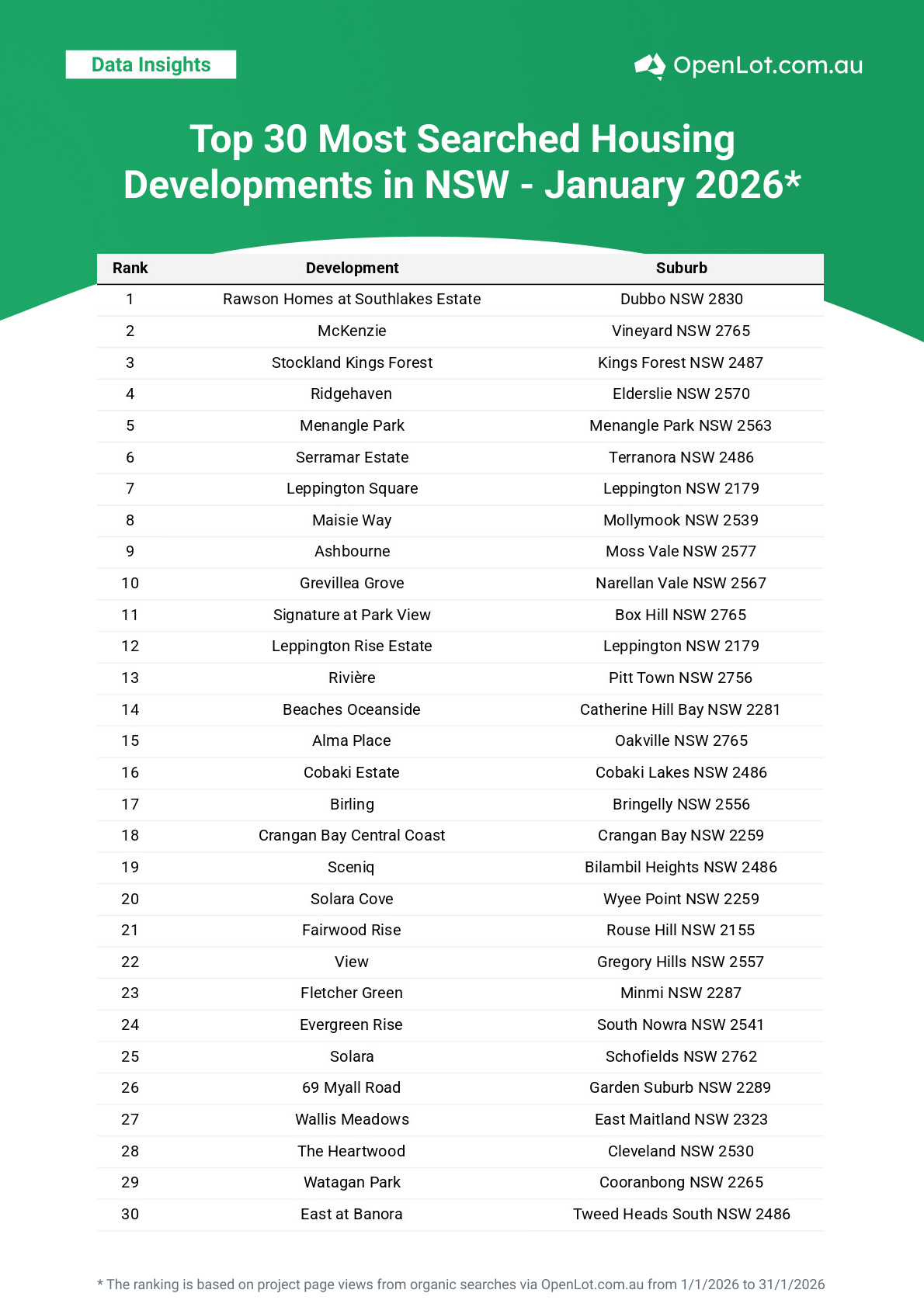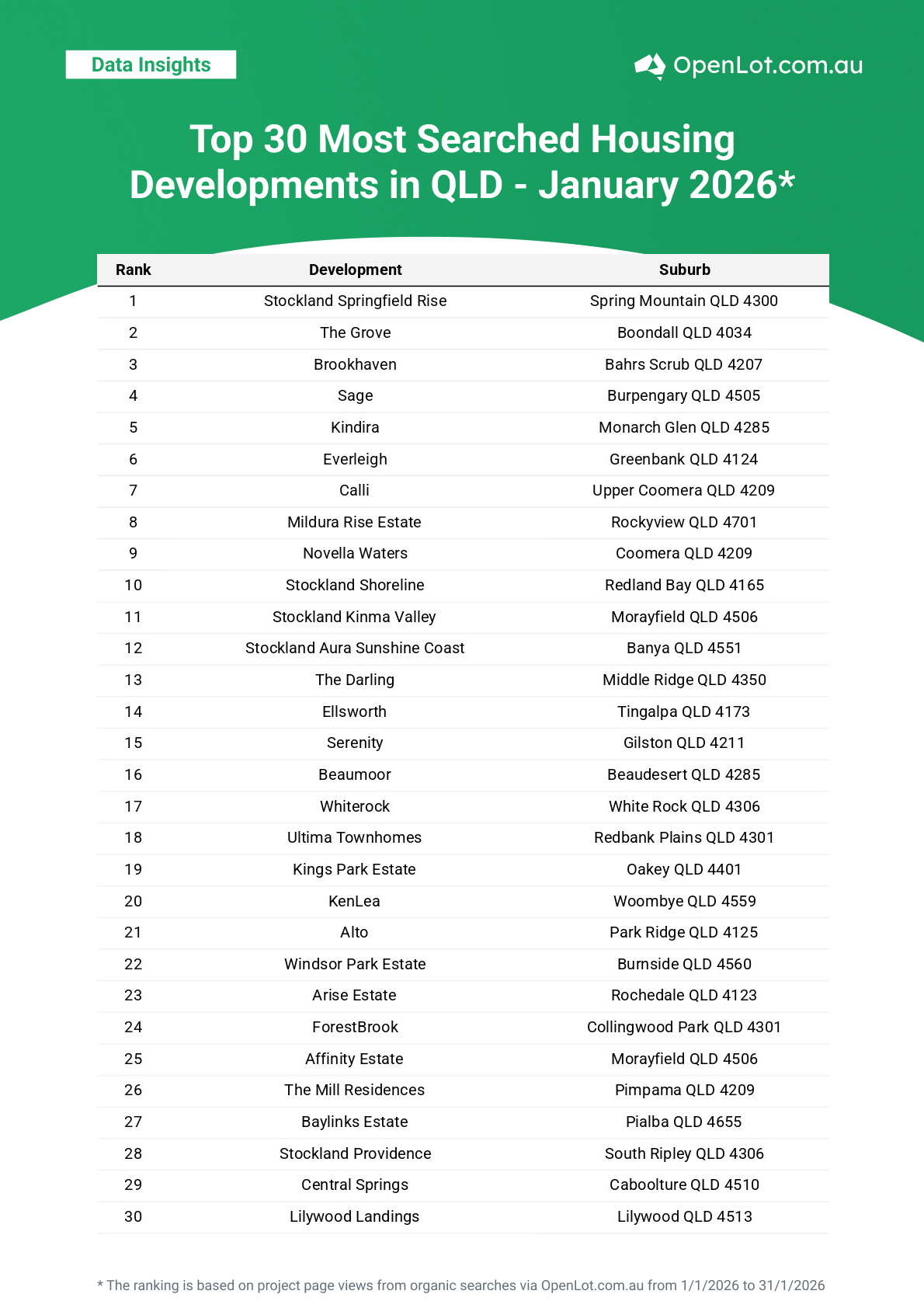 January’s search rankings reveal a clear theme: buyers are prioritising housing developments that offer both lifestyle and long-term potential. Whether it’s masterplanned growth corridors, coastal destinations or regional communities with space to grow, demand remains strong across every major state.