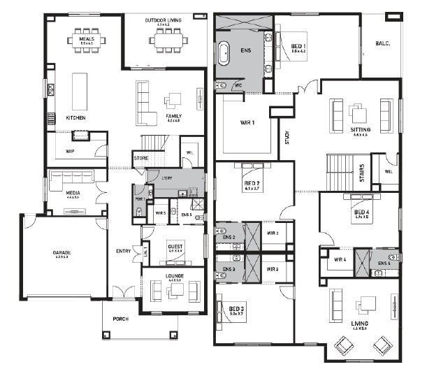 The Bolton 45 redefines spacious and functional home design, offering unparalleled comfort and versatility for families of all sizes. Featuring five generous bedrooms, including a luxurious master suite with a private retreat, walk-in robe, and double vanity ensuite, this home delivers the perfect blend of style and sophistication.