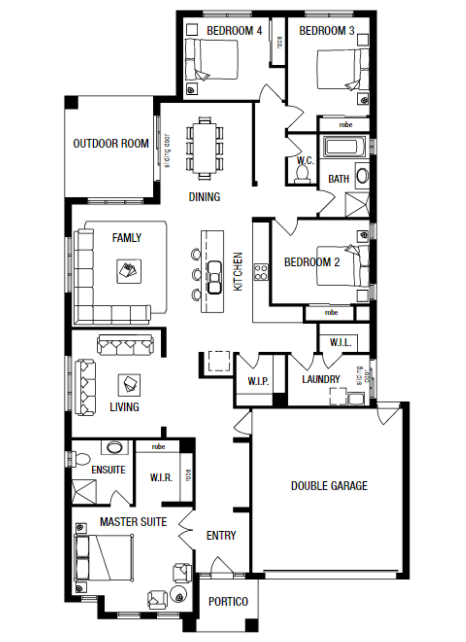A new addition to the Freedom by Metricon range is the cleverly designed Langdon. Featuring four bedrooms, including a large master bedroom with ensuite and walk in robe, this home is sure to impress with its family friendly layout. Built around a central kitchen and family area, the single-storey Langdon is sure to please all the family with its use of space. The home design also includes a theatre room to enjoy the latest big screen blockbusters as well as an outdoor room to make the most of the size of your block of land.