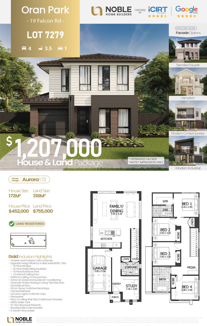 Brand New House & Land Package in Oran Park - Built by Noble Home Builders, an iCIRT 4.5-star rated builder renowned for quality and reliability