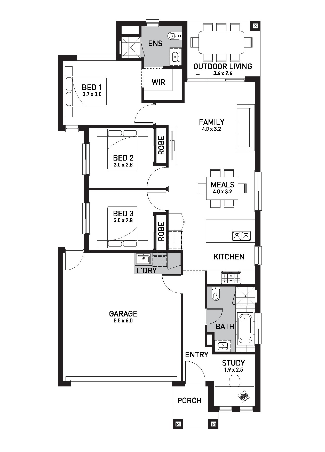 - Double-glazed awning windows and sliding doors to double-storey homes throughout