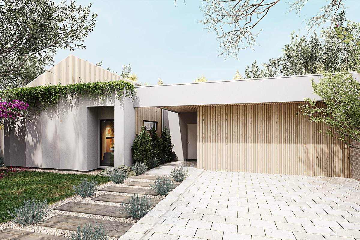 The standout in this design is the ingenious private entry. The porch is nestled behind a dummy entrance with a well-proportioned atrium in between, which results in a generous set back from the street, offering added security.