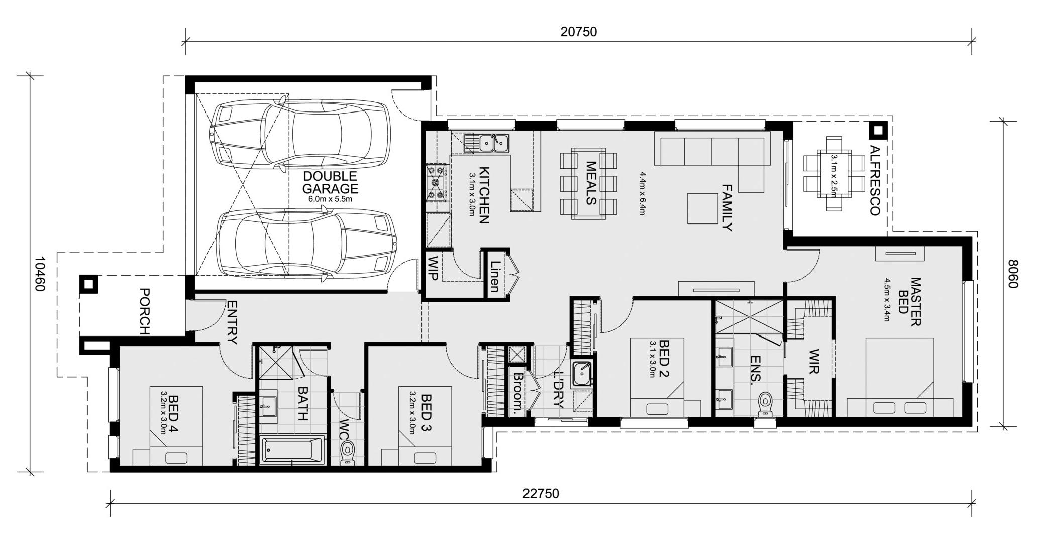 All plans and facades are indicative only and may change. Mimosa Homes may amend plans, specifications, and prices without notice. Package prices are based on a standard facade, standard inclusions, and suitable land availability, excluding developer/estate requirements. Facade and inclusion images may show nonstandard items not included in the price. Dimensions are approximate. Landscaping, fencing, decking, planter boxes, driveways, and paths are excluded unless specified.