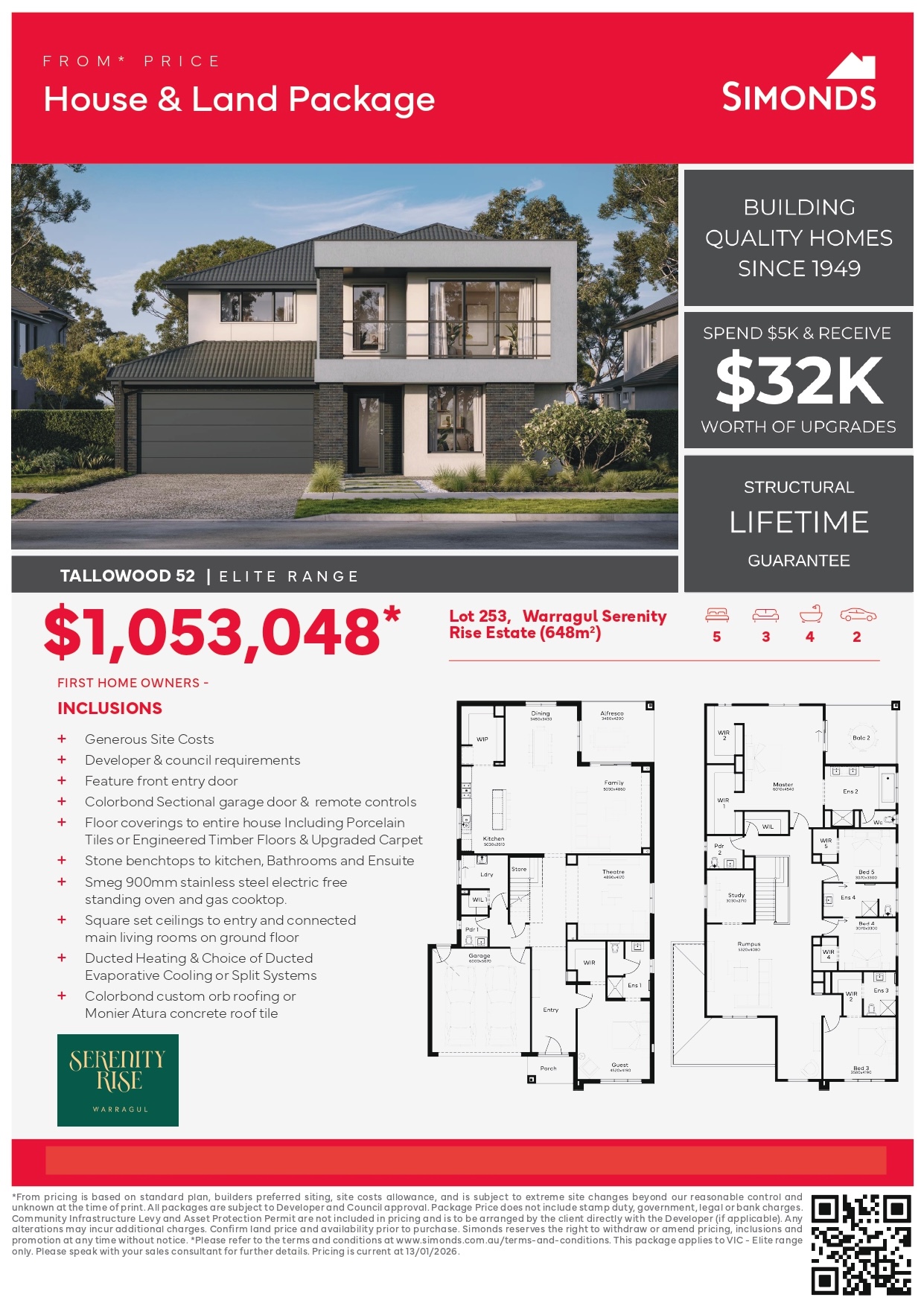 + Floor coverings to entire house Including Porcelain Tiles or Engineered Timber Floors & Upgraded Carpet