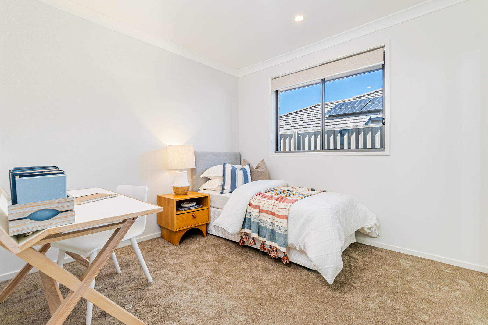⢠Flyscreens to all windows and sliding doors, block out blinds throughout, and light filtering blinds to front elevation