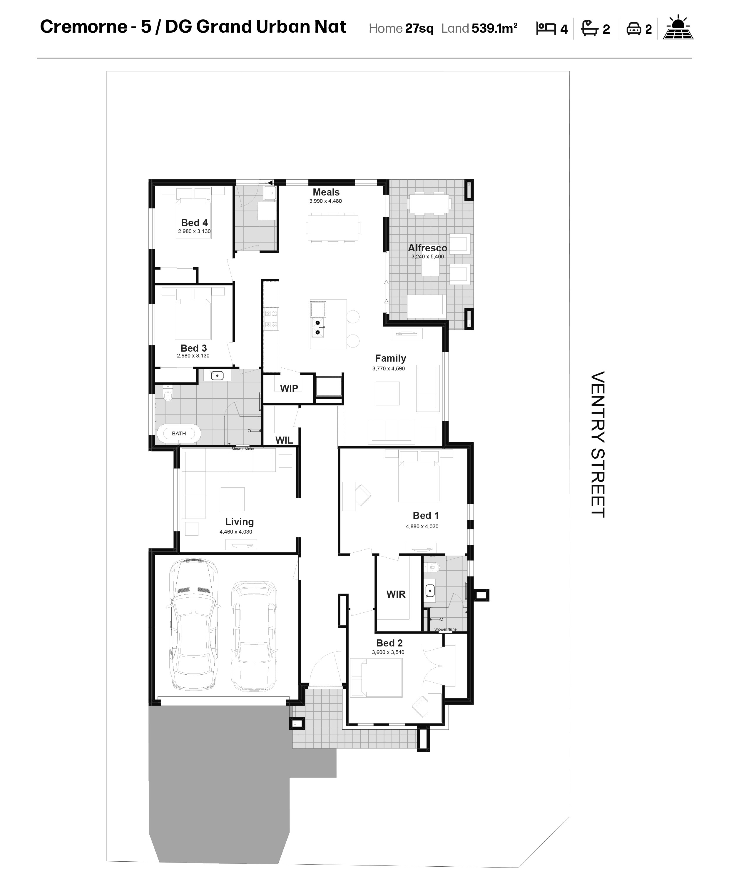 Disclaimer: Plans, drawings, and designs on this website are for marketing and illustrative purposes only. Dimensions are approximate, subject to survey and final subdivision plans (STCA). Plans are not to scale. Images, including artist impressions, may depict items not included in the sale. Purchasers should rely on their own enquiries and the Contract for Sale. Allam Homes Pty Limited may alter designs, specifications, dimensions, inclusions, and prices without notice. For full terms, visit www.allam.com.au.