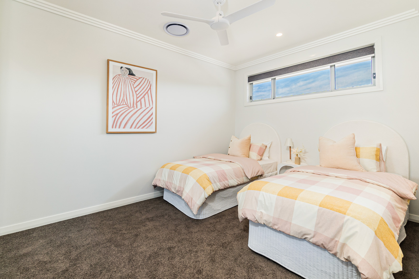 ⢠Flyscreens to all windows and sliding doors, block out blinds throughout and light filtering blinds to front elevation