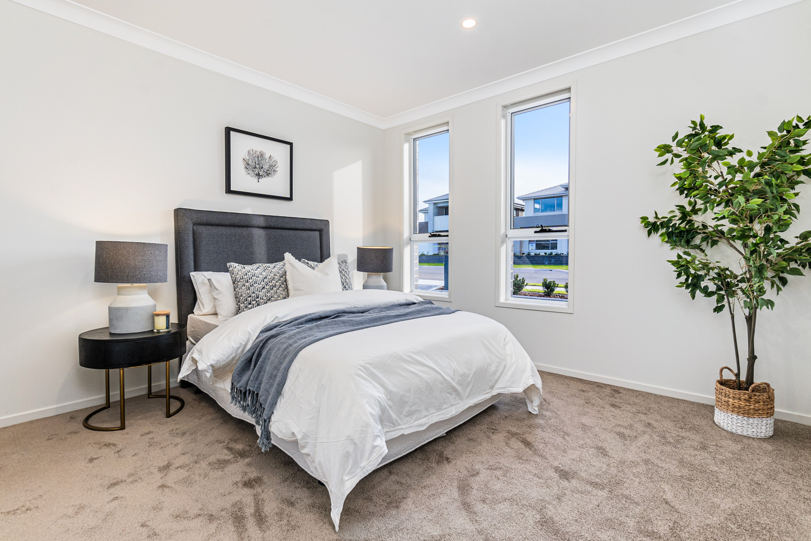 -Flyscreens to all windows and sliding doors, block out blinds throughout and light filtering blinds to front elevation