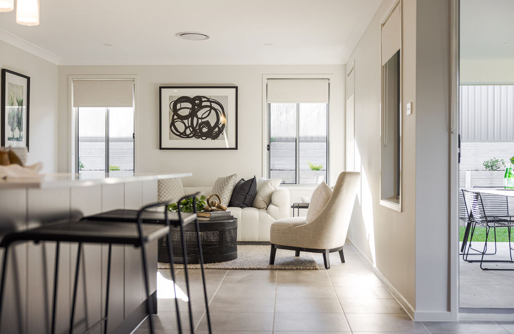 ⢠Flyscreens to all windows and sliding doors, block out blinds throughout, and light filtering blinds to front elevation