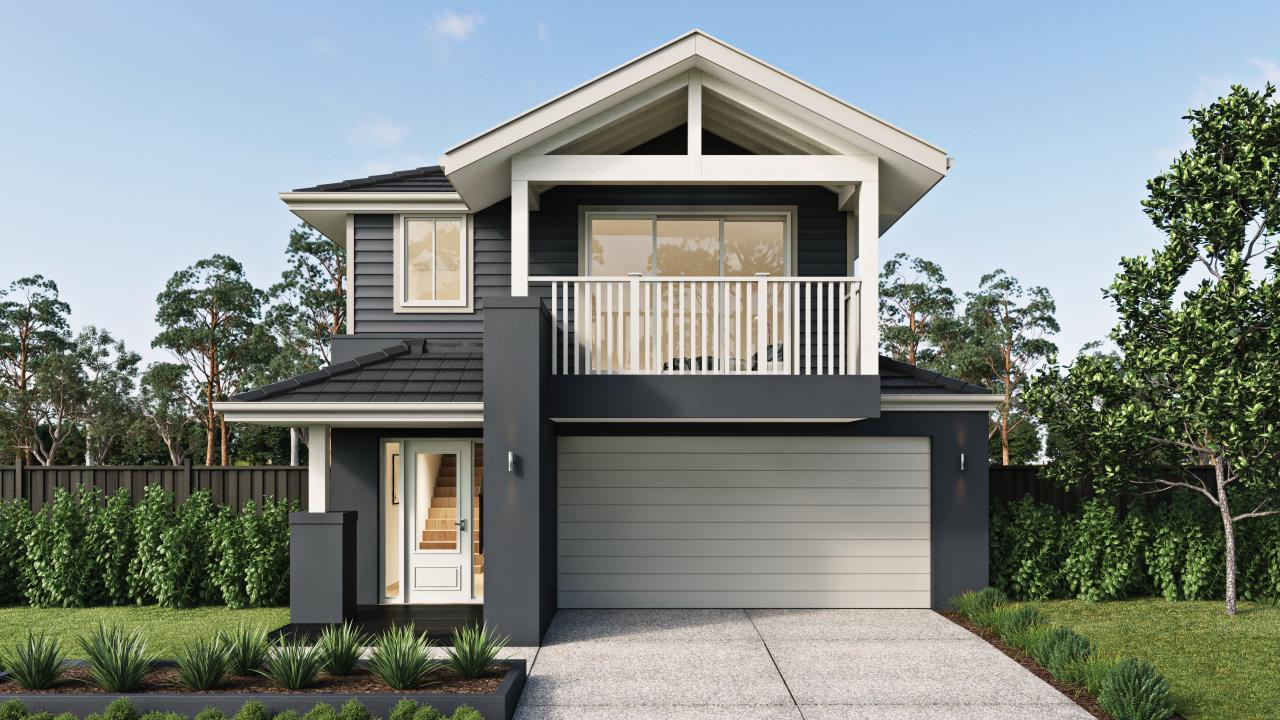*Image may include upgrade items above standard specification such as feature render and bricks, front entrance timber decking, front entry door, brick infills above garage, external lighting, fencing, concrete paths and driveway. Image may depict fixtures, finishes and features not supplied by Metricon such as landscaping and fencing. Accordingly, any prices in this flyer do not include the supply of any of those items.