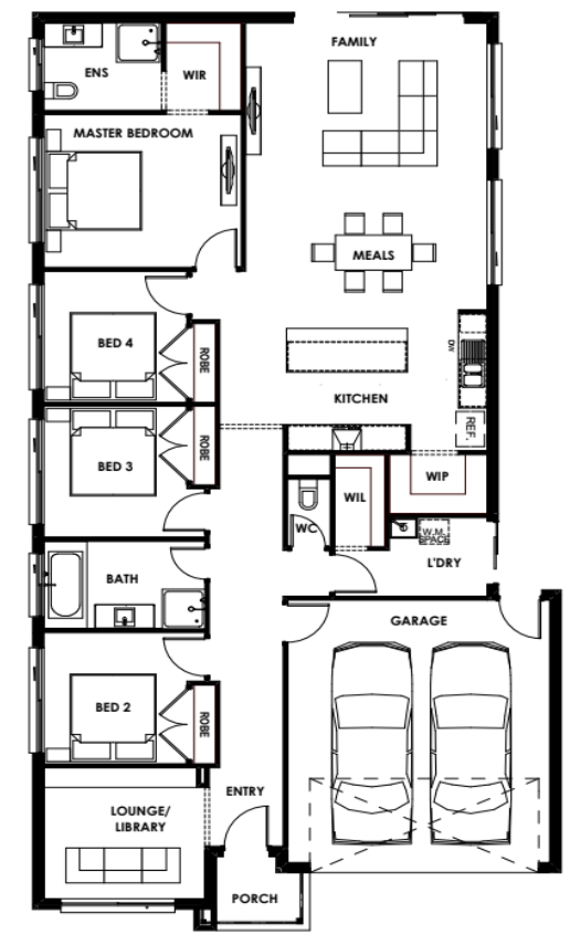 The Newbury 22 offers 4 generous sized bedrooms plus 2 living areas, double garage, separate laundry with large walk-in-linen and a large kitchen with walk-in pantry.