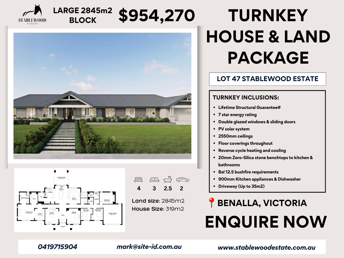 Experience the best of country-style living with this stunning lifestyle home in Stablewood Estate. Set on a massive 2,845m² block and offering over 319m² of thoughtfully designed internal space, this turnkey package delivers privacy, practicality and premium inclusions in a growing regional hub.