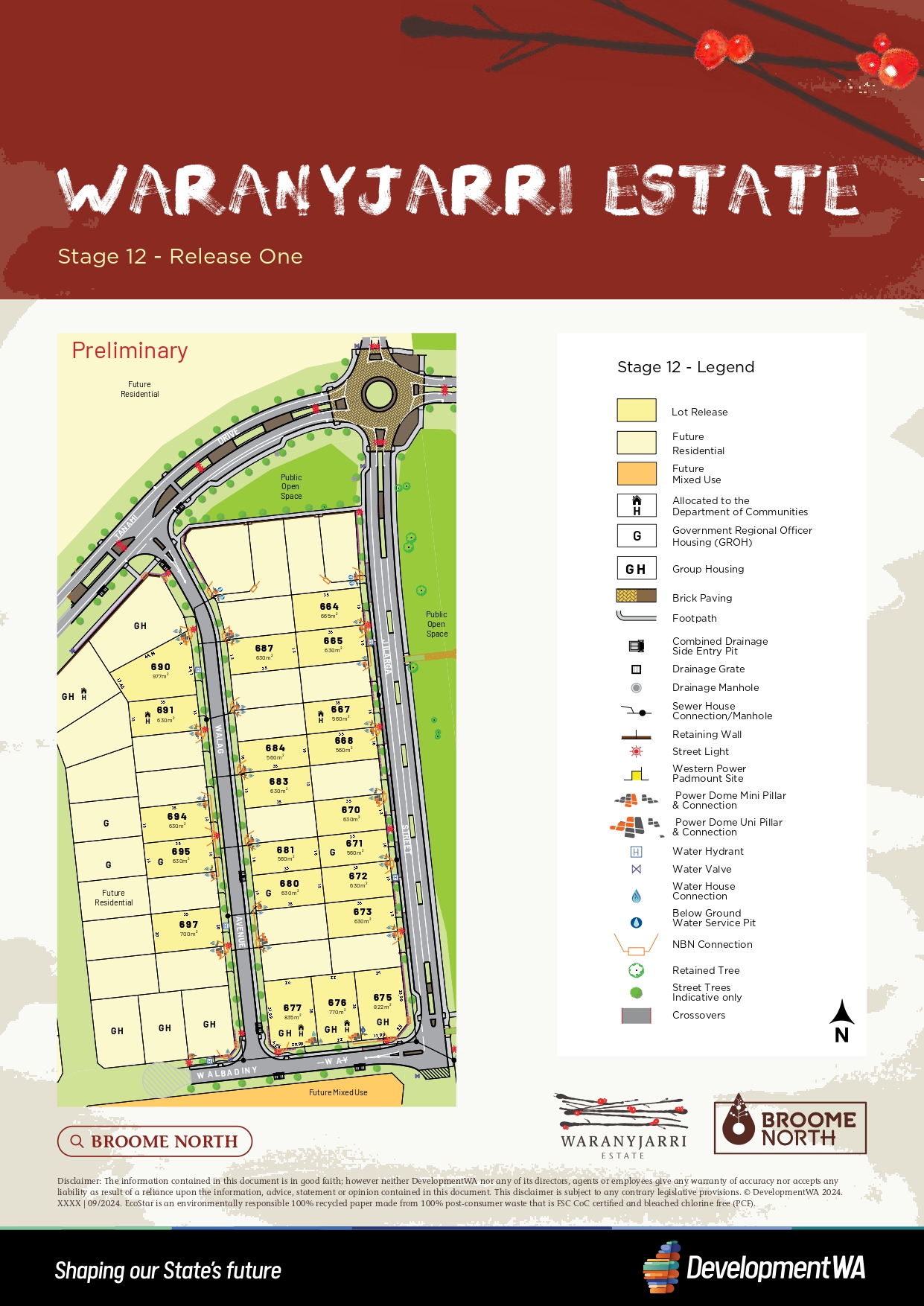 - Over half of the new Stage 11 lots released in Waranyjarri Estate are now under contract, with sub-divsion works completed and lot titles now received.