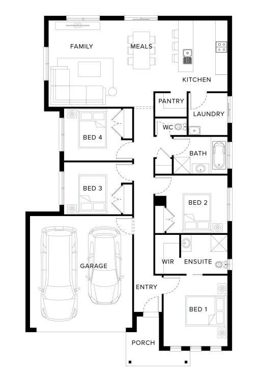 ⢠Choice of Laminate or Tiled flooring to Entry, Kitchen, Family and Meals. Carpet to the remaining areas