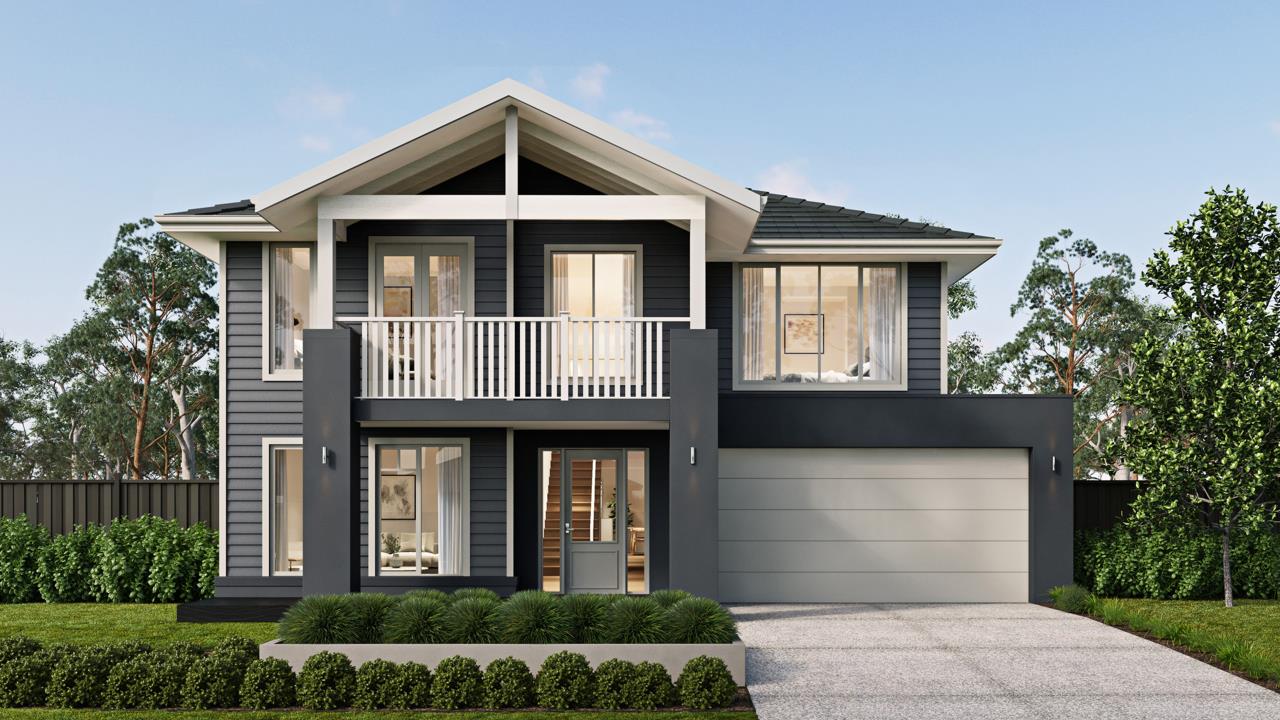 *Price excludes upgrade items above standard specification such as feature render and bricks, front entrance timber decking, front entry door, brick infills above garage, external lighting, fencing, concrete paths and driveway. Facade Image may also contain items not supplied by Metricon, namely landscaping and planter boxes. Aluminium double glazed windows are subject to specific home design, refer to plans.