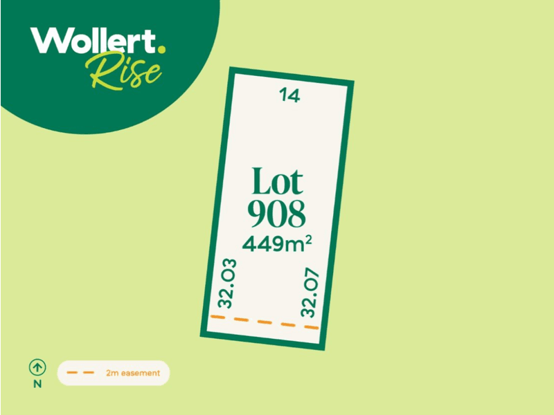 Don’t wait to start your new chapter — Lot 908 at Wollert Rise is a generous 449sqm titled lot (14 m x 32 m), ready for your dream home today.