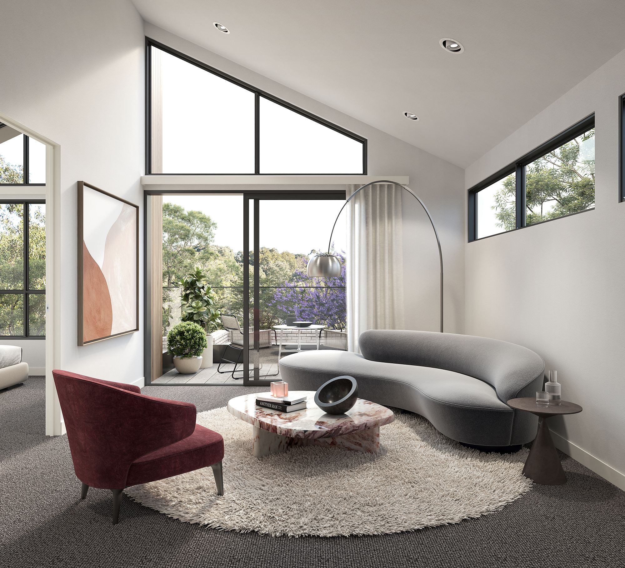 High ceilings throughout further enhance the sense of space and natural light, creating an airy and sophisticated living environment.